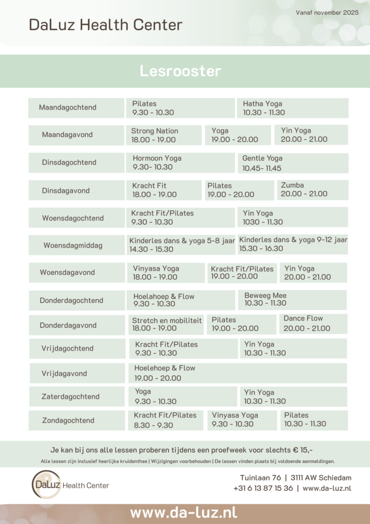 Vanaf oktober gaan de lessen Hormoon Yoga en Gentle Yoga plaats vinden op de dinsdagochtend. Op dinsdag 7 oktober zijn hiervoor gratis try-out lessen. Voor meer informatie kijk op onze inspiratie pagina.