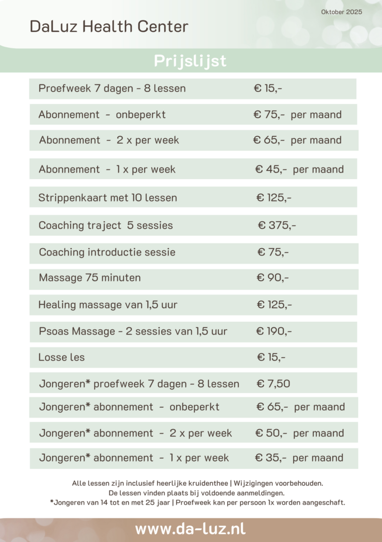 We zijn per 1 oktober 2023 gestart met het nieuwe programma en de app TRAININ. (https://da-luz.trainin.app/)